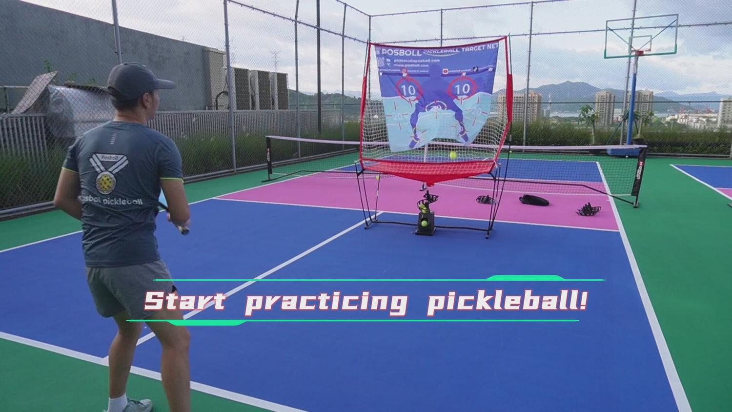 Posboll Pickleball Machine Ball Thrower Tennis Ball Machine with Catch Net